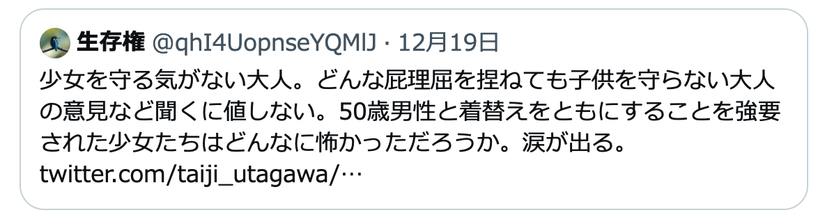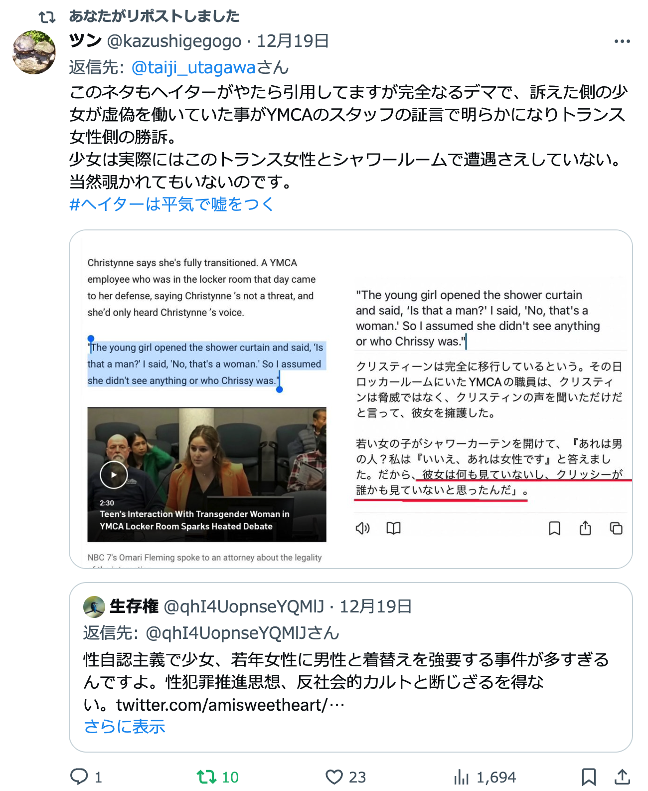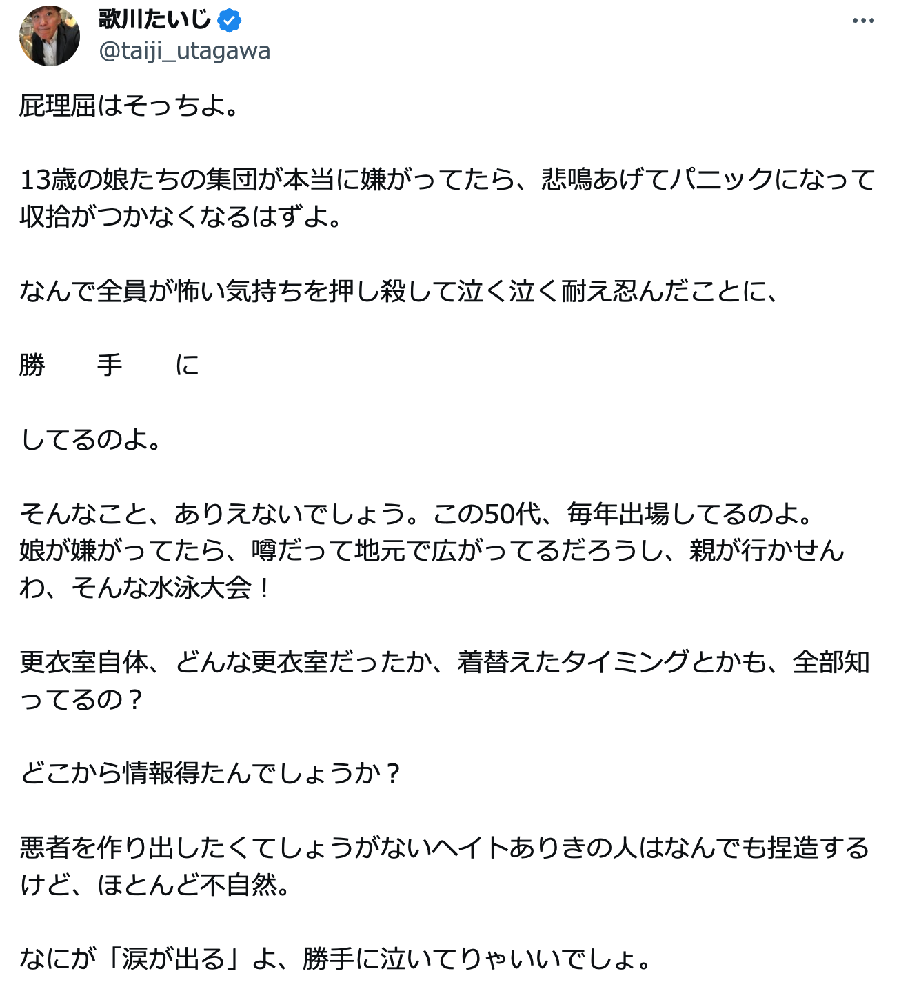 「少女達と同じ更衣室で着替えを強行した」「少女達はおびえていた」とか、そんなデマも飛び交ったのでした。